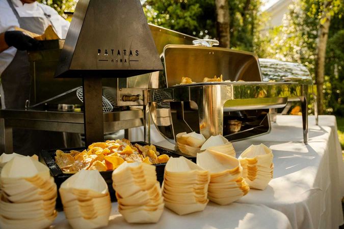 Lavoriamo con un approccio consapevole: materiali compostabili o riutilizzabili, riduzione degli sprechi e attenzione all’impatto del servizio, senza rinunciare alla coerenza visiva e alla presentazione.
